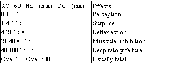 Before learning safety precautions, you should look at some of the possible effects of electrical current on the human body. The following table lists some of the probable effects of electrical current on the human body.